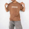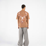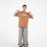 Inspired by timeless heritage palettes, this brown-toned oversized tee brings old-school charm to contemporary streetwear.